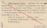 ROTH Samuel 1879 Notizen aus der Hohen Tátra. 1. Granit im Hangenden der Dyas. 2. Haematit im Granit der Tátra. 3. Der Glimmerschiefer der Granatenwand im Felkaer Thale.