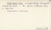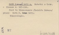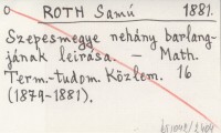 ROTH Samuel 1878 Jegyzetek a Magas-Tátrából. I. A Sirokahegy gránitja mint diaszbeli képletek fedője. II. Haematit Gránitban.