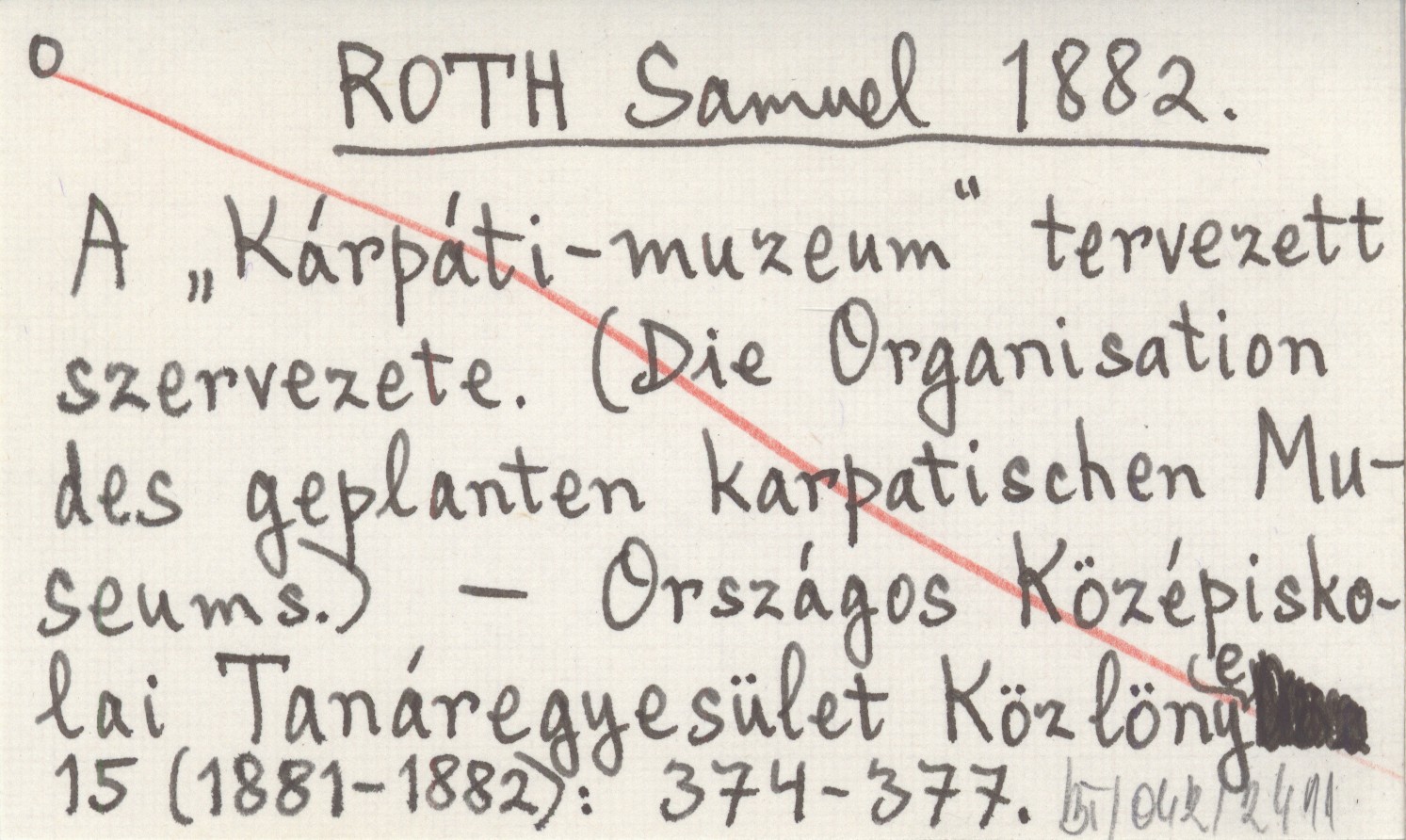 ROTH Samuel 1882 A "Kárpáti-muzeum" tervezett szervezete. (Die Organisation des geplanten karpatischen Museums).