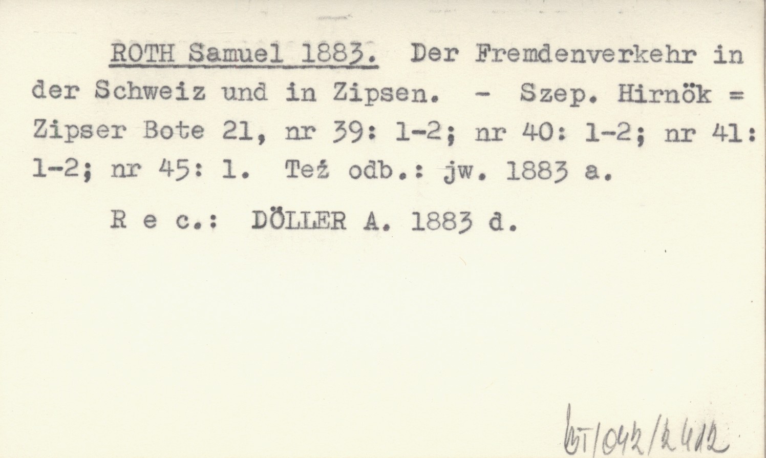 Szepesi Hirnök = Zipser Bote, 21, nr 39: 1-2 ; nr 40: 1-2 ; nr 41: 1-2 ; nr 45: 1. Też odb.: jw. 1883 a REC: DÖLLER A. 1883 d