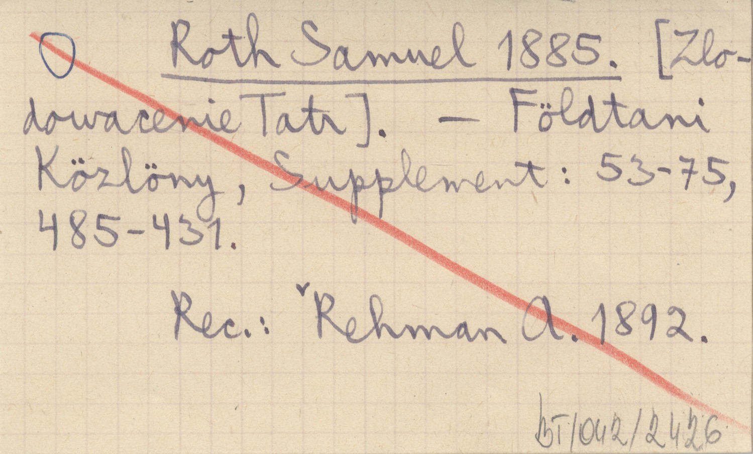Földtani Közlöny, Supplement: 53-75, 485-431. REC: REHMAN A. 1892