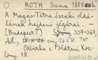RÓTH Samu [ROTH Samuel] 1888 A Magas-Tátra jégárairól.