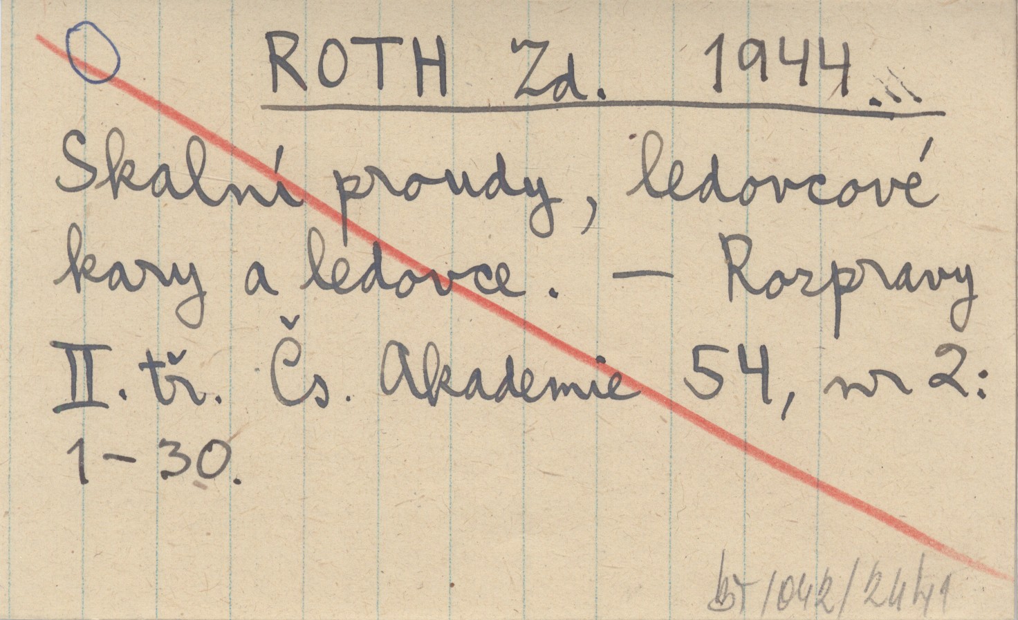 ROTH Zd. 1944 Skalní proudy, ledovcové kary a ledovce.