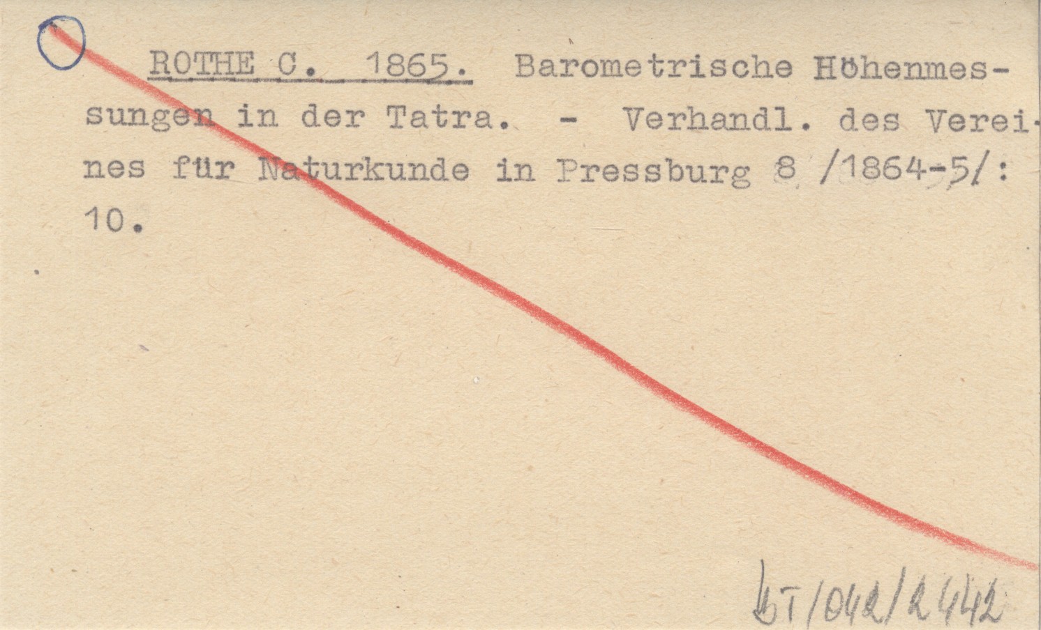 ROTHE C. 1865 Barometrische Höhenmessungen in der Tatra.