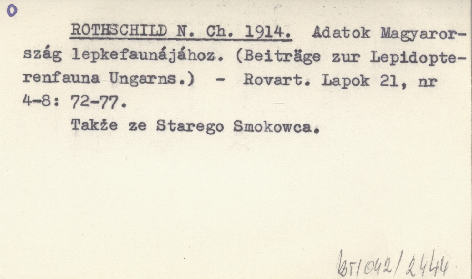 ROTHSCHILD N. Ch. 1914 Adatok Magyarország lepkefaunájához. (Beiträge zur Lepidopterenfauna Ungarns).