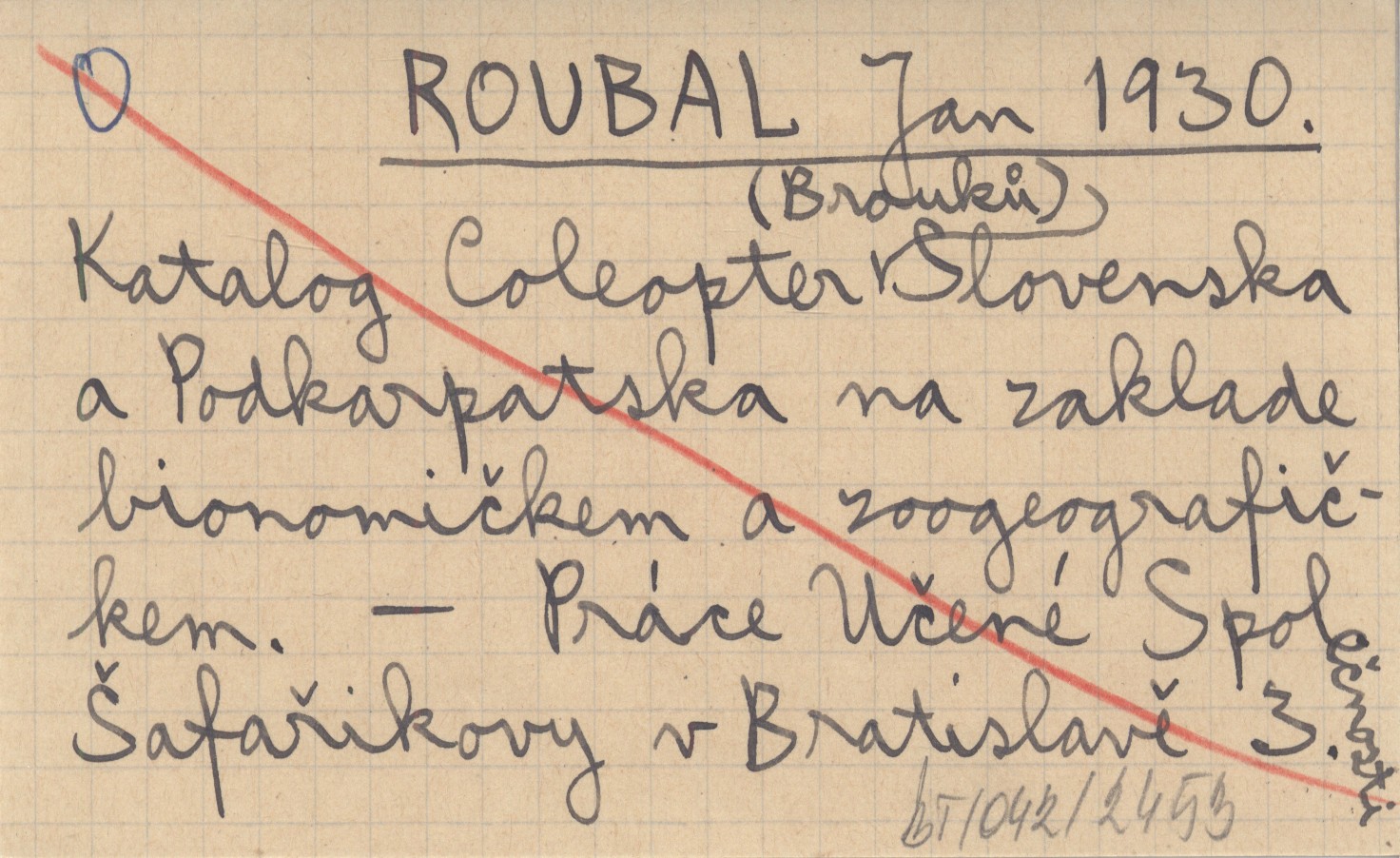 ROUBAL Jan 1930 Katalog Coleopter (Brouků) Slovenska a Podkarpatska na zaklade bionomičkem a zoogeografičkem.