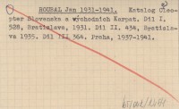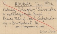 ROUBAL Jan 1931-1941 Katalog Coleopter Slovenska a východnich Karpat.