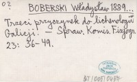 BOBERSKI Władysław 1889... Trzeci przyczynek do lichenologi Galicji.