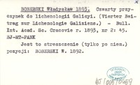 BOBERSKI Władysław 1893 Czwarty przyczynek do lichenologii Galicyi. (Vierter Beitrag zur Lichenologie Galiziens.).