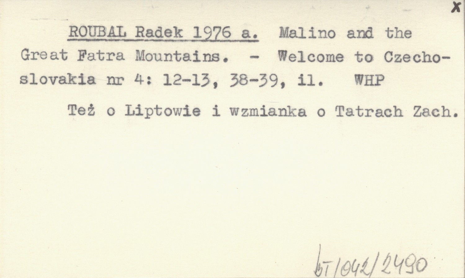 ROUBAL Radek 1976 a Malino and the Great Fatra Mountains.