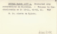 ROUBAL Radek 1977 a Protected city reservations in Slovakia.