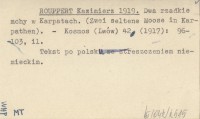 ROUPPERT Kazimierz 1919 Dwa rzadkie mchy w Karpatach. (Zwei seltene Moose in Karpathen).