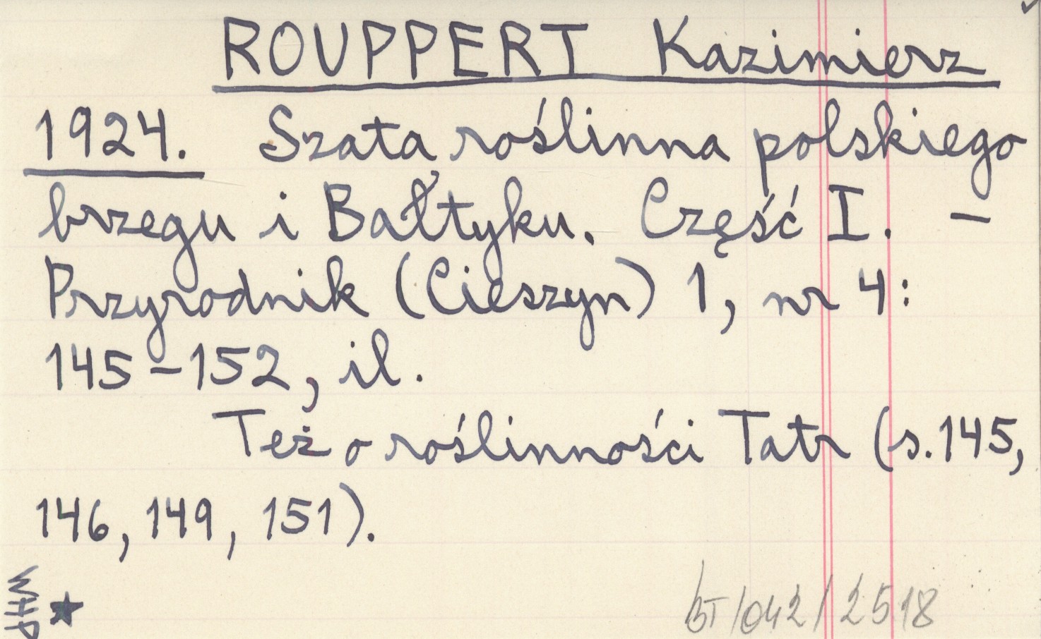 Przyrodnik (Cieszyn) , 1, nr 4: 145-152, il. Też o roślinności Tatr (s. 145, 146, 149, 151).