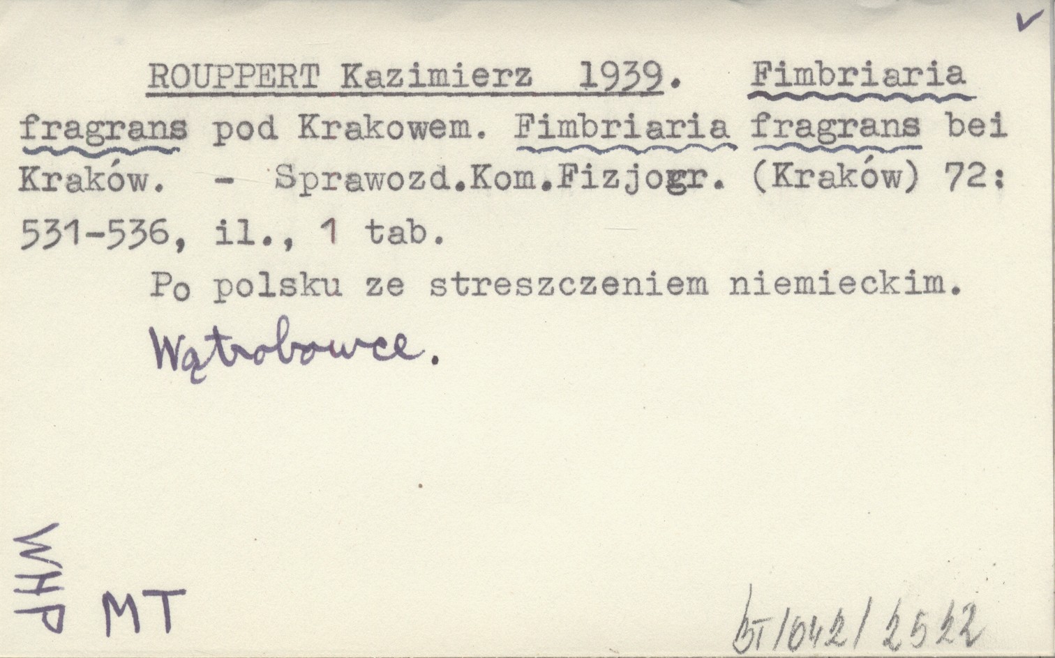Sprawozdanie Komisji Fizjograficznej (Kraków) , 72: 531-536, il., 1 k. tabl. Po polsku ze streszczeniem niemieckim. Wątrobowce.