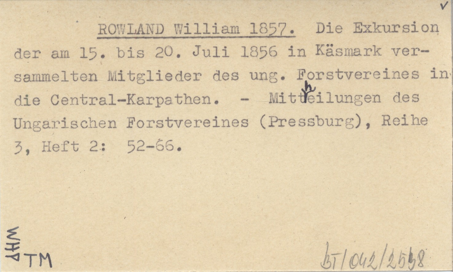 ROWLAND William 1857 Die Exkursion der am 15. bis 20. Juli 1856 in Käsmark versammelten Mitglieder des ung. Forstvereines in die Central-Karpathen.