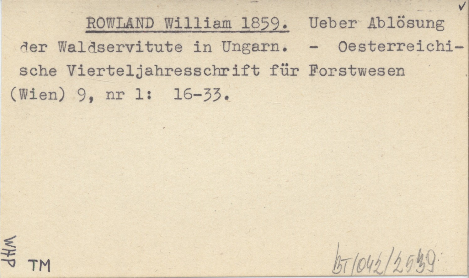 ROWLAND William 1859 Ueber Ablösung der Waldserviute in Ungarn.