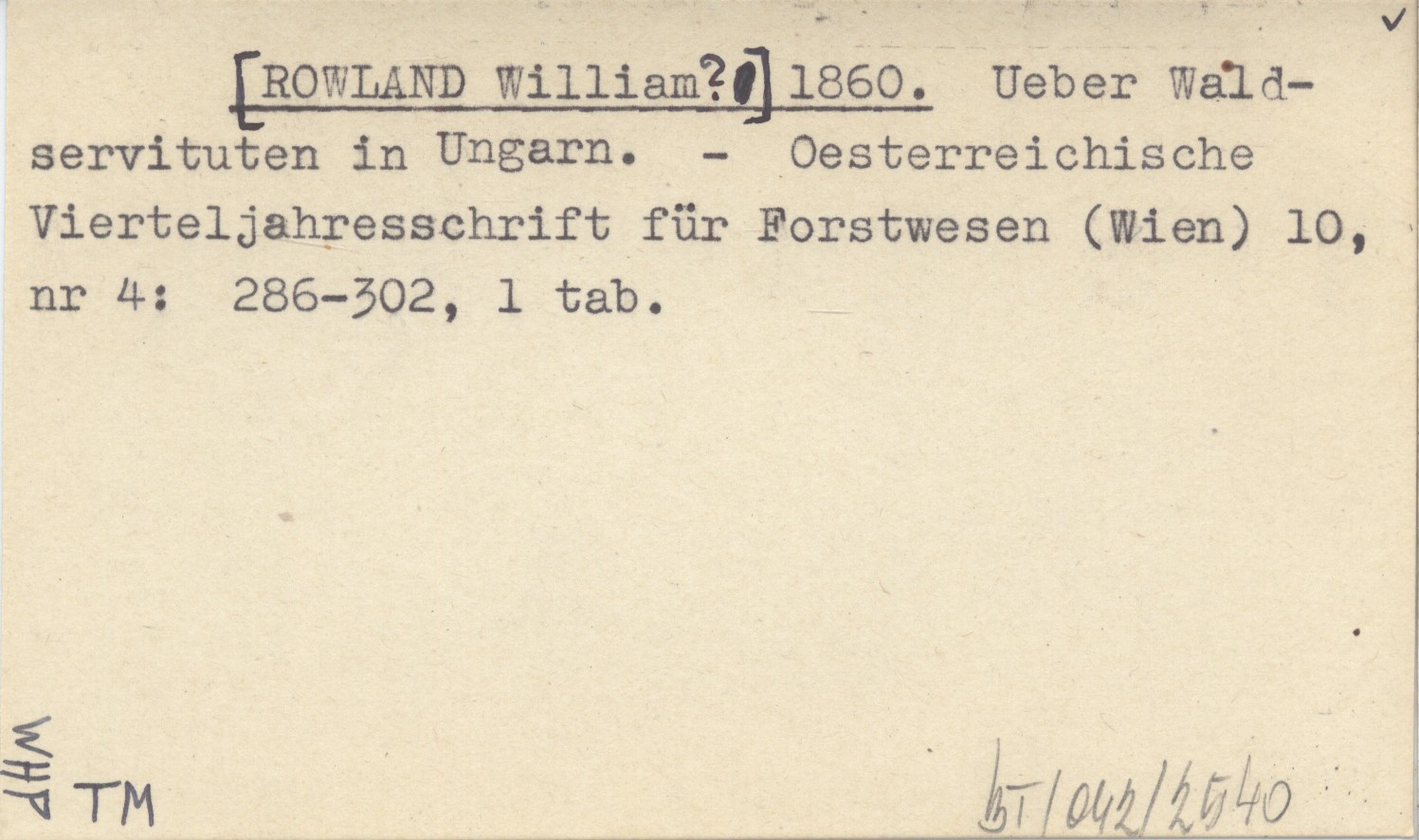 [ROWLAND William?] 1860 Ueber Waldservituten in Ungarn.