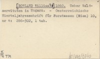 ROWLAND William 1859 Ueber Ablösung der Waldserviute in Ungarn.