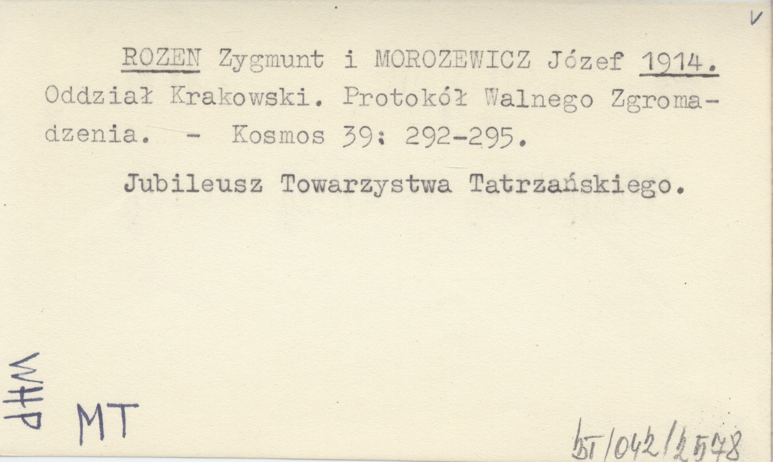 ROZEN Zygmunt MOROZEWICZ, Józef. ; 1914 Oddział Krakowski. Protokół Walnego Zgromadzenia.