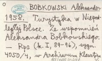 BOBKOWSKI Aleksander 1958 Turystyka w Niepodległej Polsce. Ze wspomnień Aleksandra Bobkowskiego.