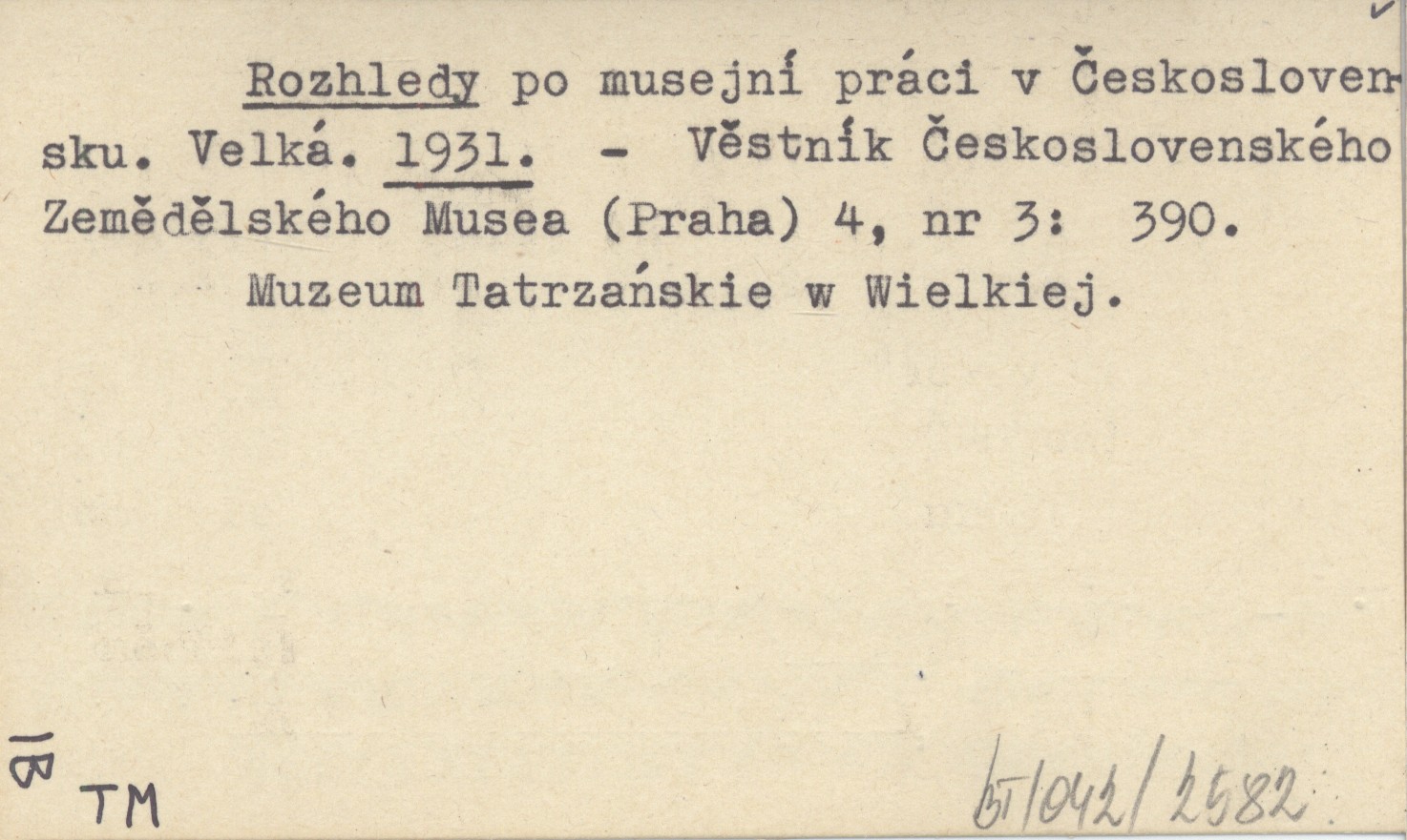 Věstník Československého Zemědělského Musea (Praha) , 4, nr 3: 390. Muzeum Tatrzańskie w Wielkiej.