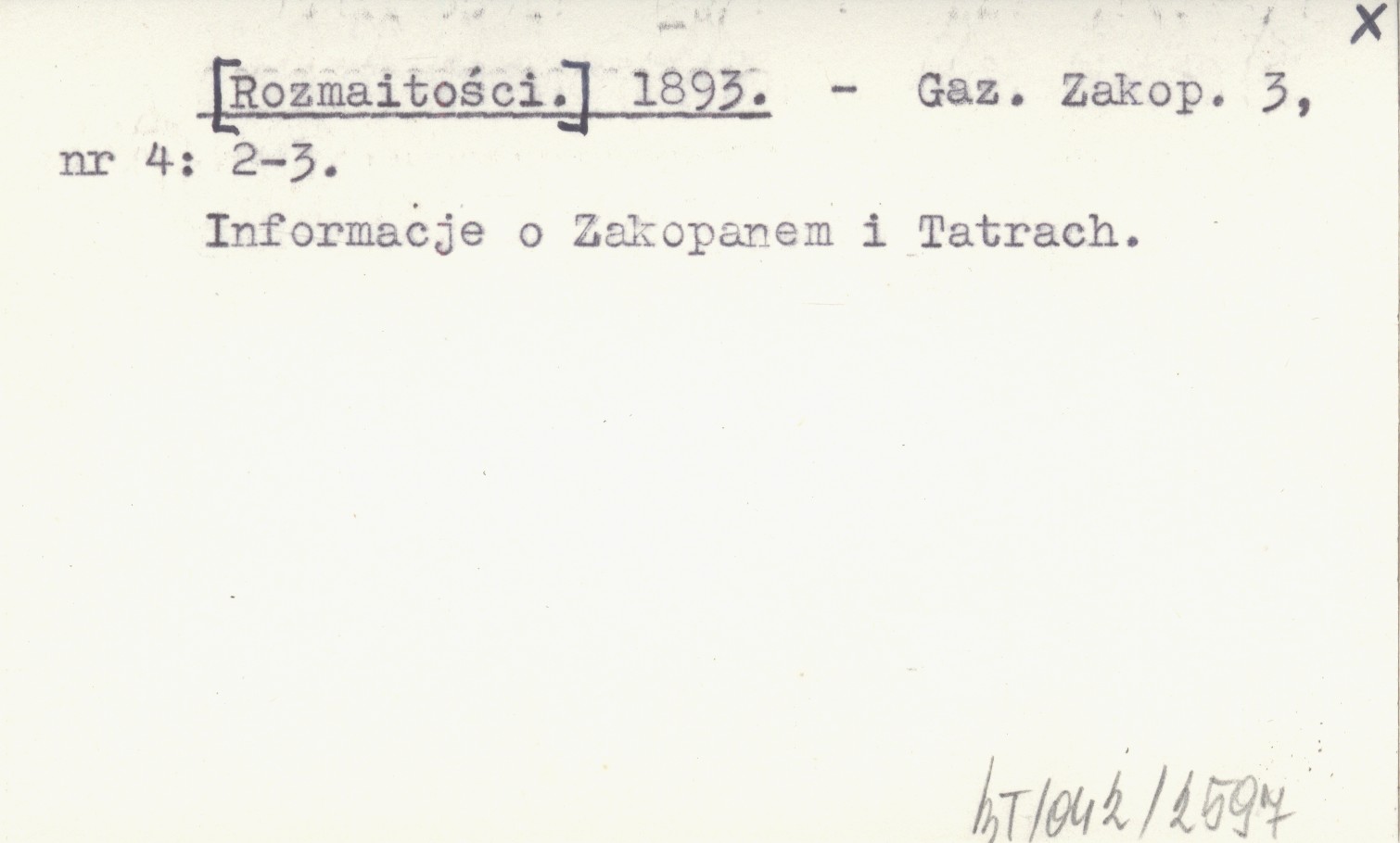 Gazeta Zakopiańska, 3, nr 4: 2-3. Informacje o Zakopanem i Tatrach.