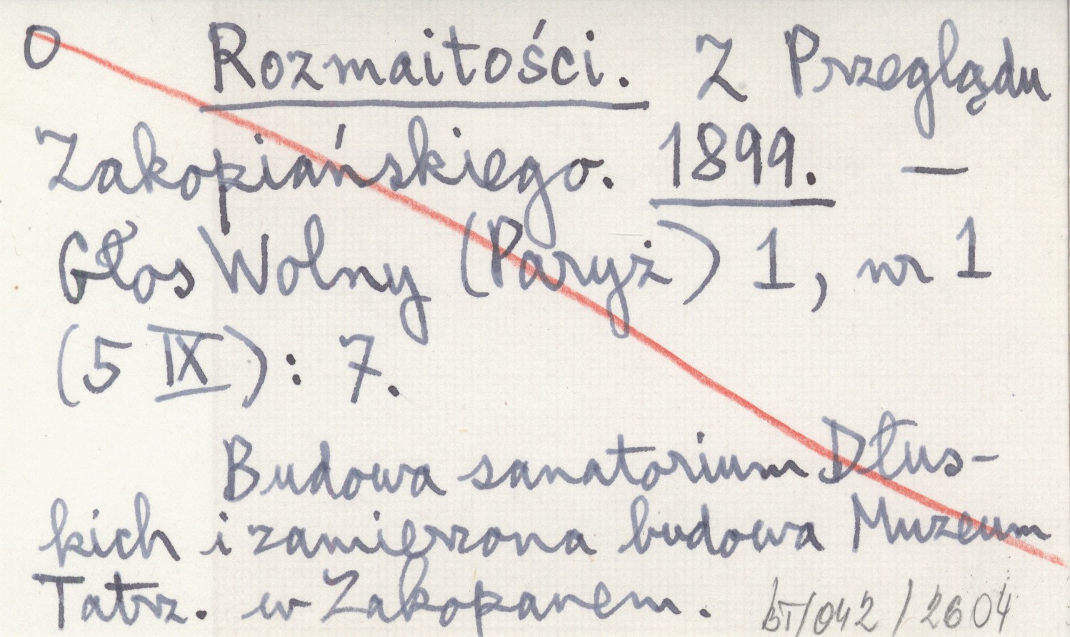 Głos Wolny (Prayż) , 1, nr 1 (5 IX): 7. Budowa sanatorium Dłuskich i zamierzona budowa Muzeum Tatrz. w Zakopanem.