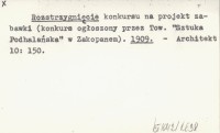 Rozstrzygnięcie konkursu na projekt zabawki (konkurs ogłoszony przez Tow. "Sztuka Podhalańska" w Zakopanem). 1909