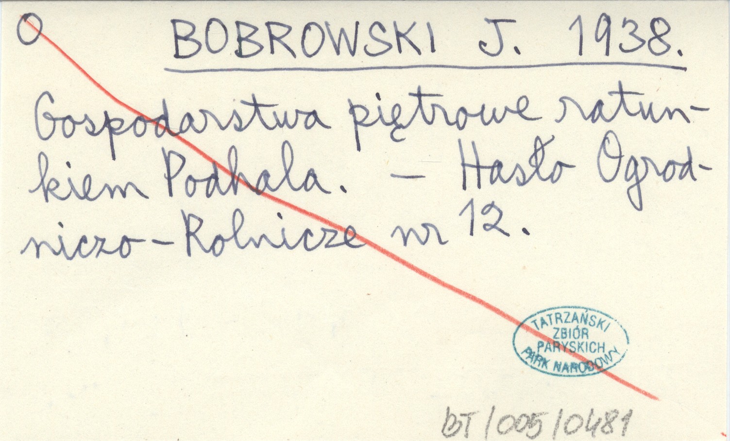 BOBROWSKI J. 1938 Gospodarstwa piętrowe ratunkiem Podhala.