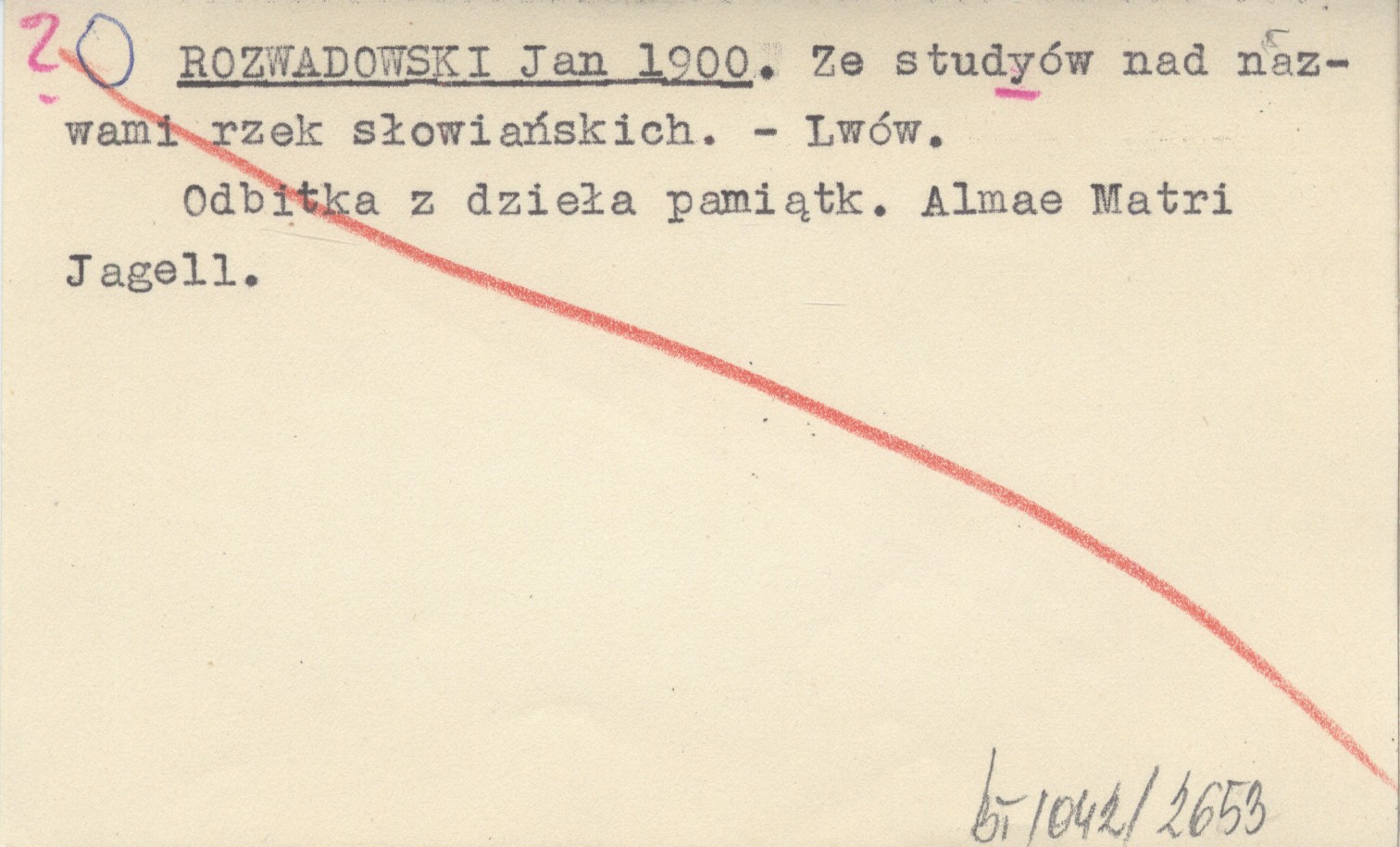 ROZWADOWSKI Jan 1900 Ze studyów nad nazwami rzek słowiańskich.