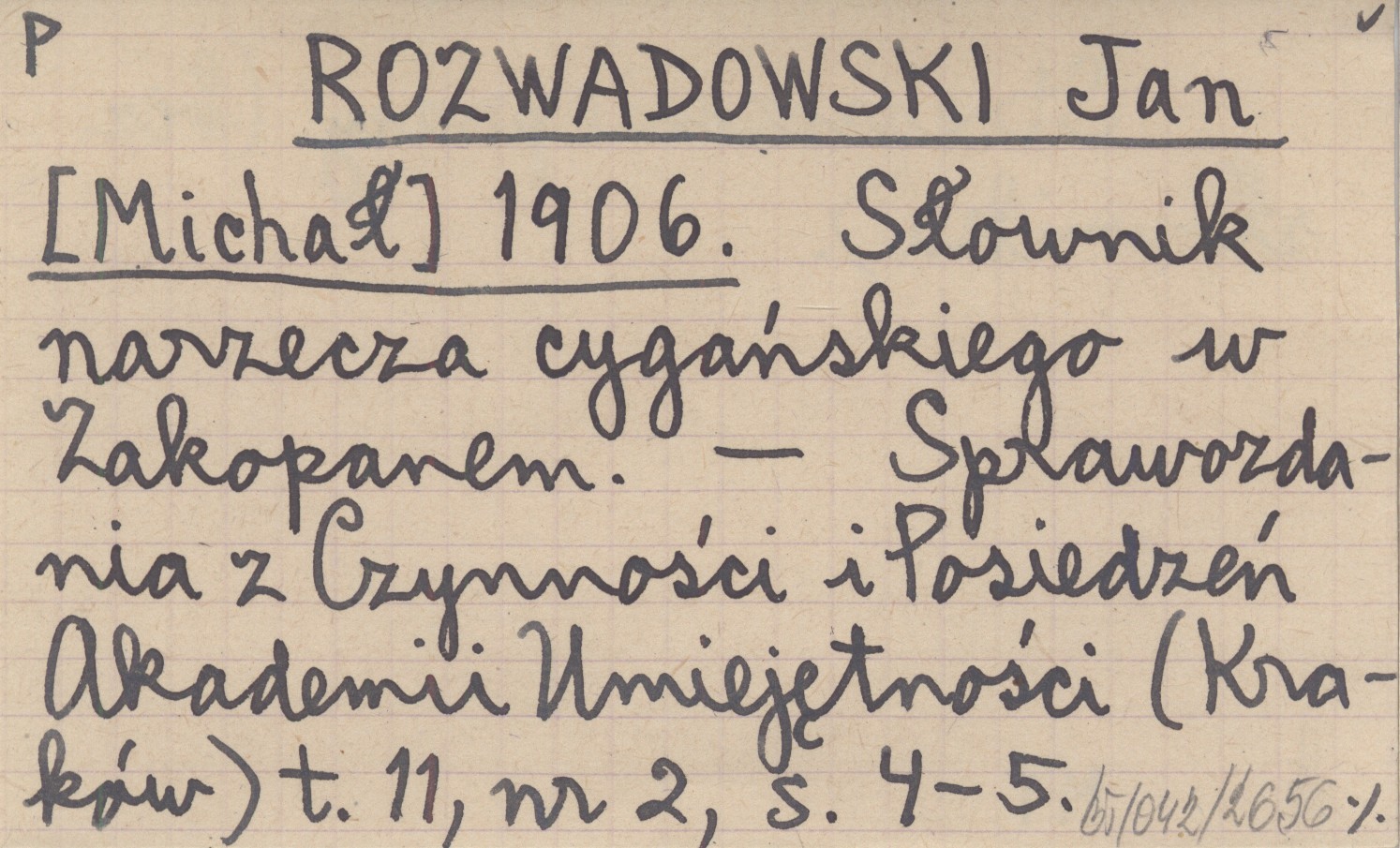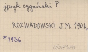 ROZWADOWSKI Jan [Michał] 1906 Słownik narzecza cygańskiego w Zakopanem.