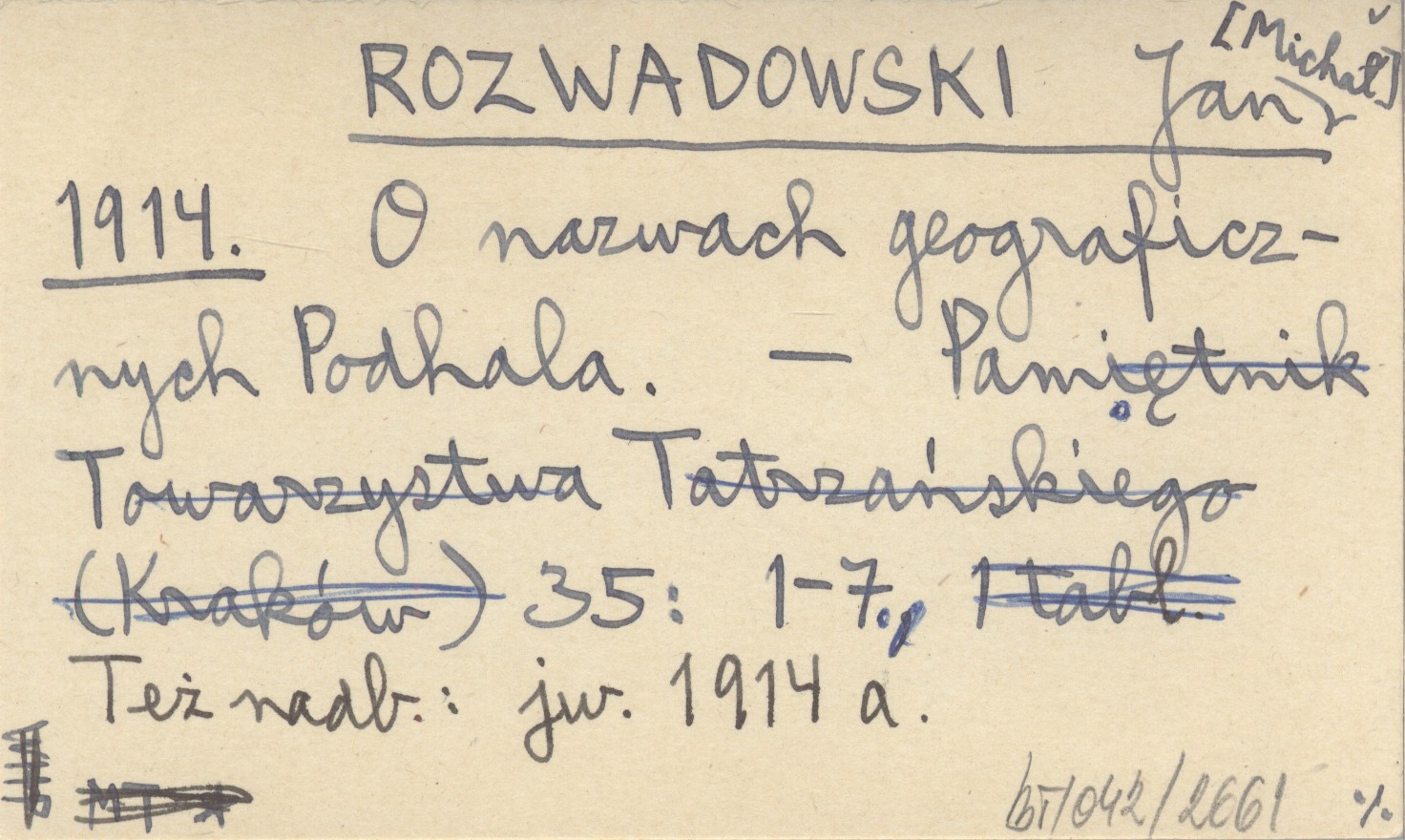 ROZWADOWSKI Jan Michał 1914 O nazwach geograficznych Podhala.