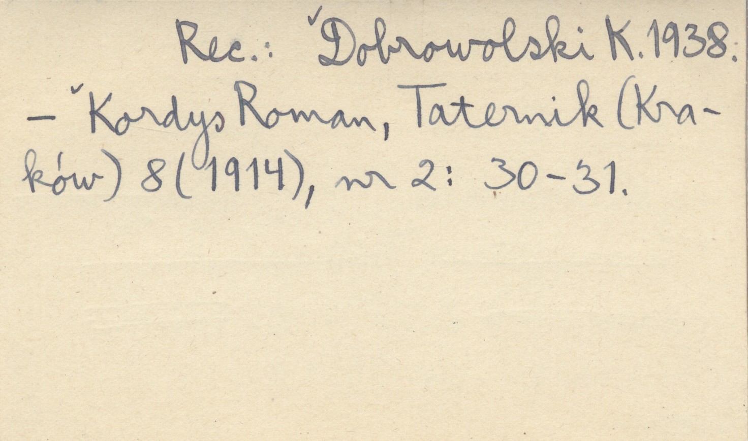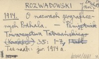Pamiętnik Towarzystwa Tatrzańskiego, 35: 1-7. Też nadb.: jw. 1914 a REC: DOBROWOLSKI K. 1938 ; KORDYS Roman, Taternik (Kraków) 8 (1914), nr 2: 30-31 ;