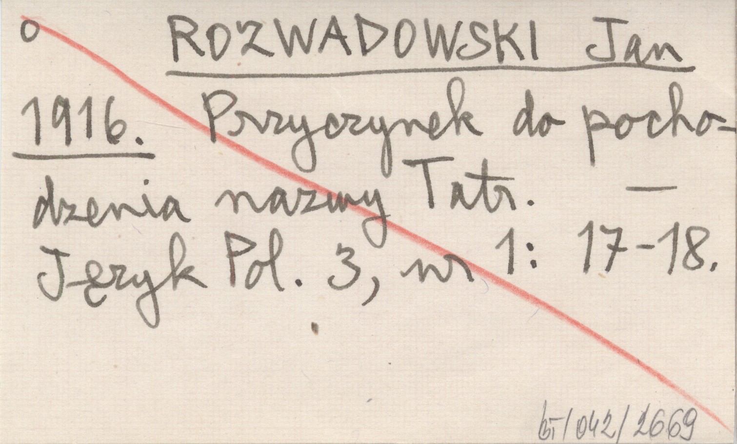 ROZWADOWSKI Jan 1916 Przyczynek do pochodzenia nazwy Tatr.