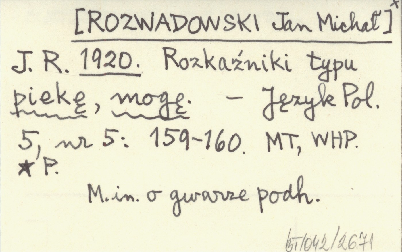 J. R. [ROZWADOWSKI Jan Michał] 1920 Rozkaźniki typu piekę, mogę.