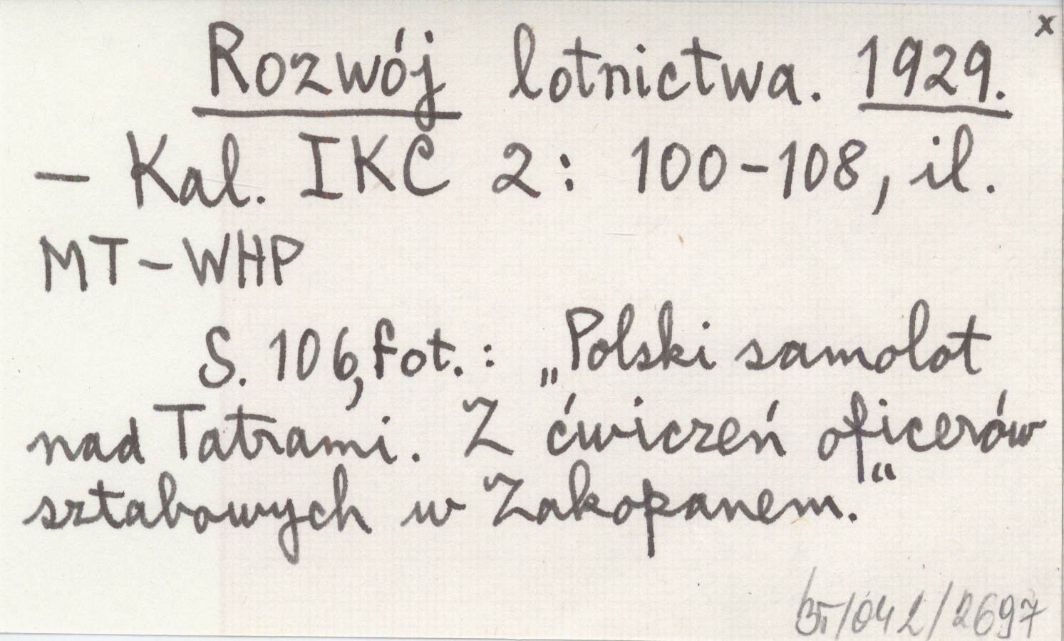 Ilustrowany Kuryer Codzienny, Kal., 2: 100-108, il. S. 106, fot.: "Polski samolot nad Tatrami. Z ćwiczeń oficerów sztabowych w Zakopanem".