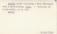 Rozwój życia klubowego w Kole Warszawskiem i Krakowskiem. 1936