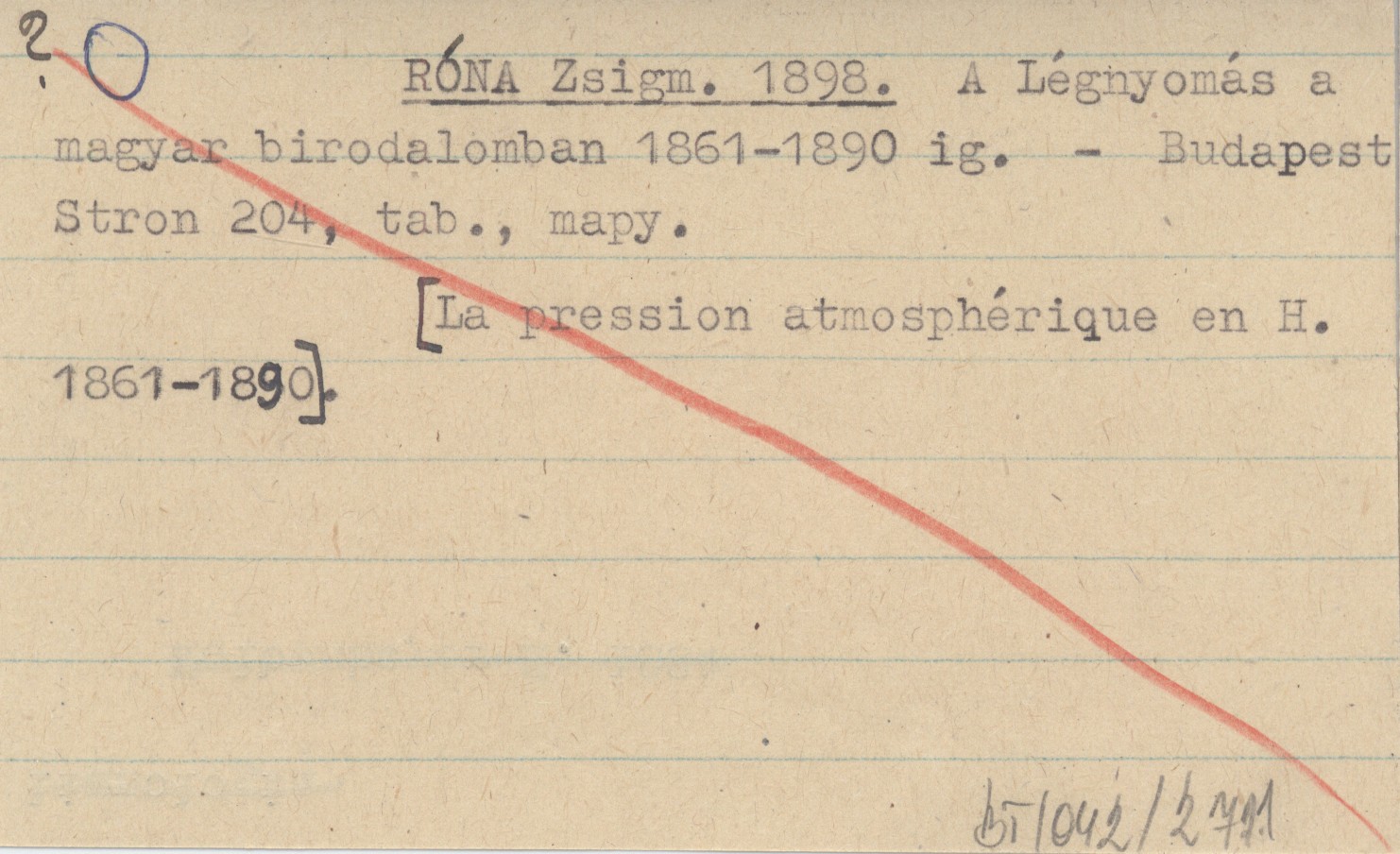 RÓNA Zsigm. 1898 A Légnyomás a magyar birodalomban 1861-1890 ig.