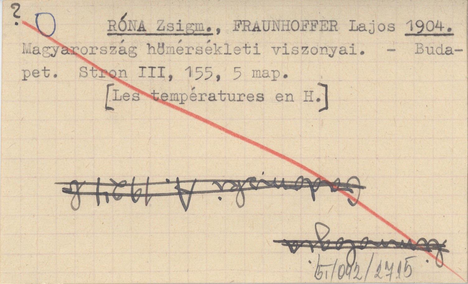 RÓNA Zsigm. FRAUNHOFFER, Lajos. ; 1904 Magyarország hömérsékleti viszonyai.