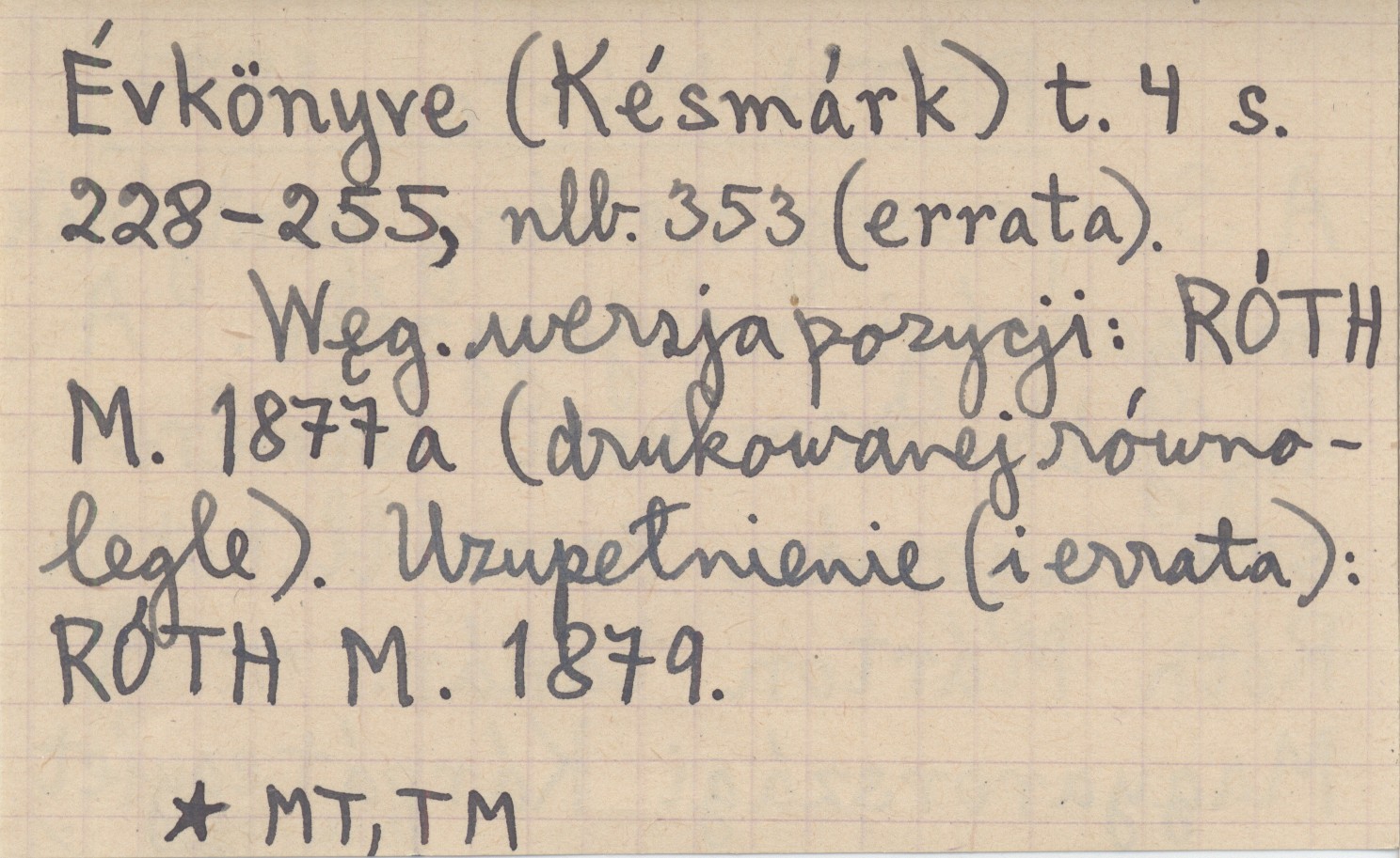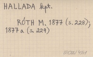 A Magyarországi Kárpát Egyesület Évkönyve (Késmárk) , T. 4: 228-225, [353] (err.). Węg. wersja pozycji: RÓTH M. 1877 a (drukowanej równolegle). Uzupełnienie (i errata): RÓTH M. 1879.