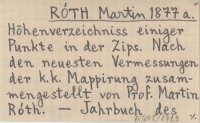 RÓTH Martin 1877 a Höhenverzeichniss einiger Punkte in der Zips. Nach den neuesten Vermessungen der k. k. Mappirung zusammengestellt von Prof. Martin Róth.