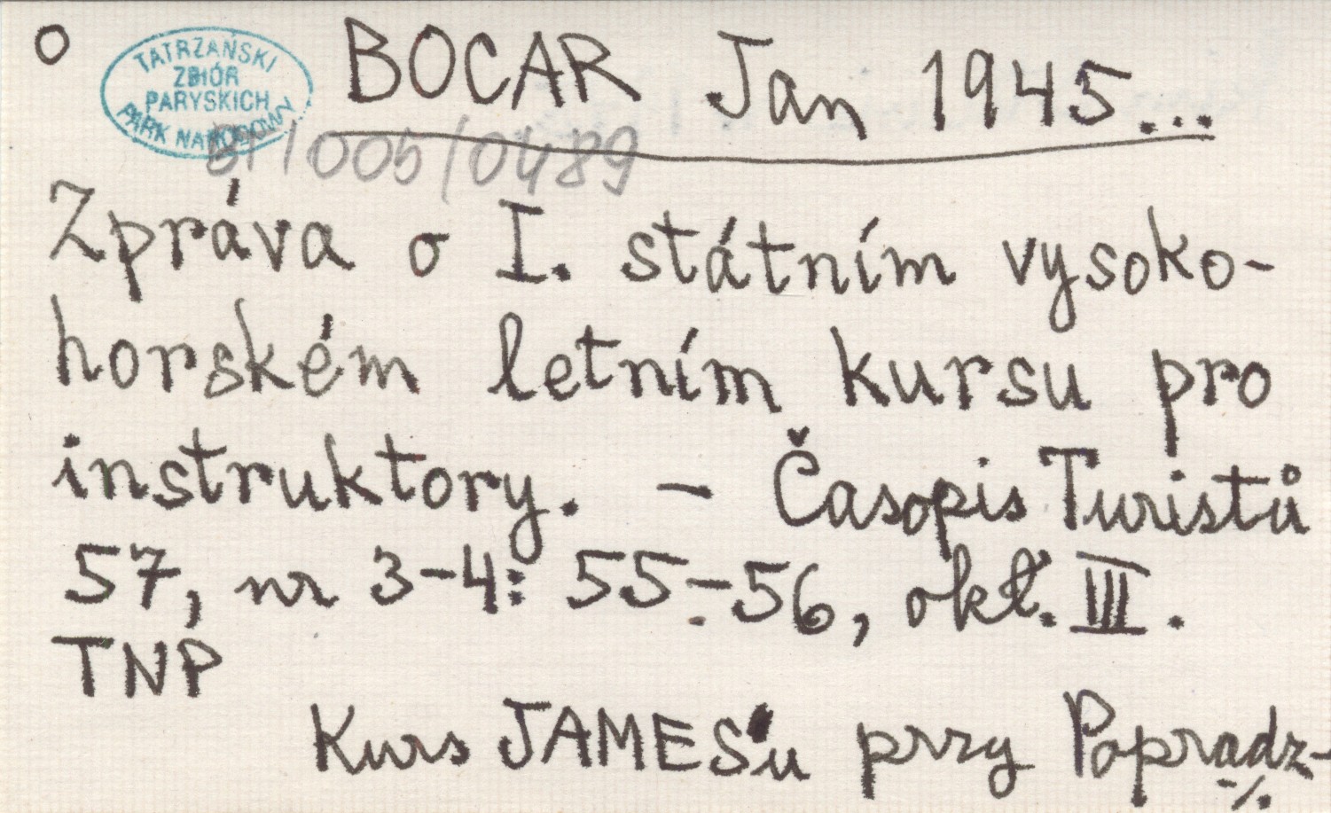 BOCAR Jan 1945... Zpráva o I. státním vysokohorském letním kursu pro instruktory.