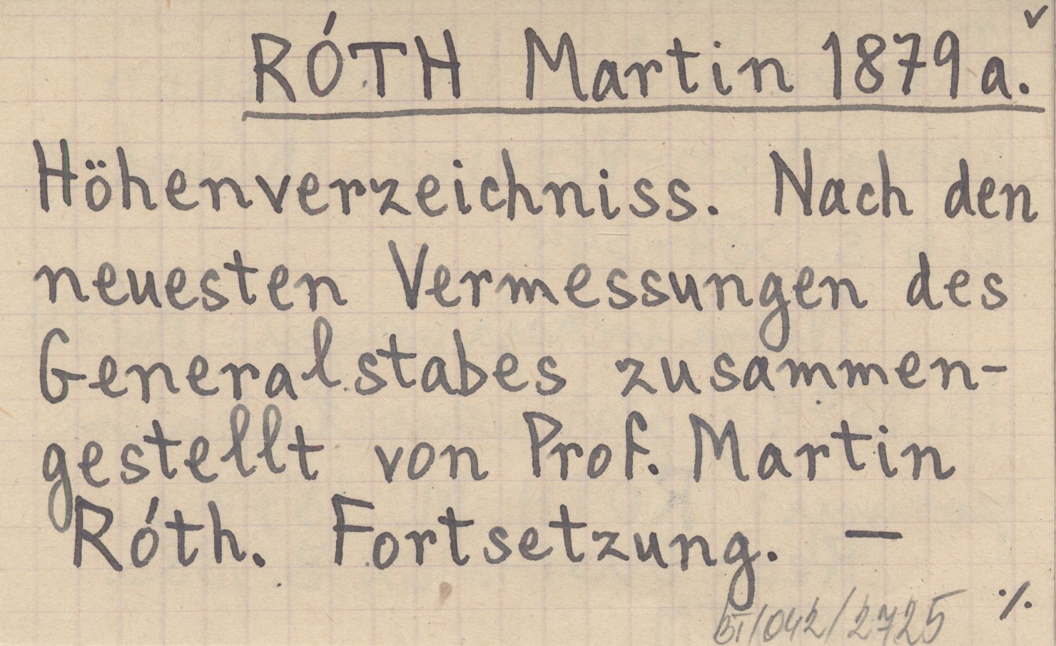 RÓTH Martin 1879 a Höhenverzeichniss. Nach den neuesten Vermessungen des Generalstabes zusammengestellt von Prof. Martin Róth. Fortsetzung.