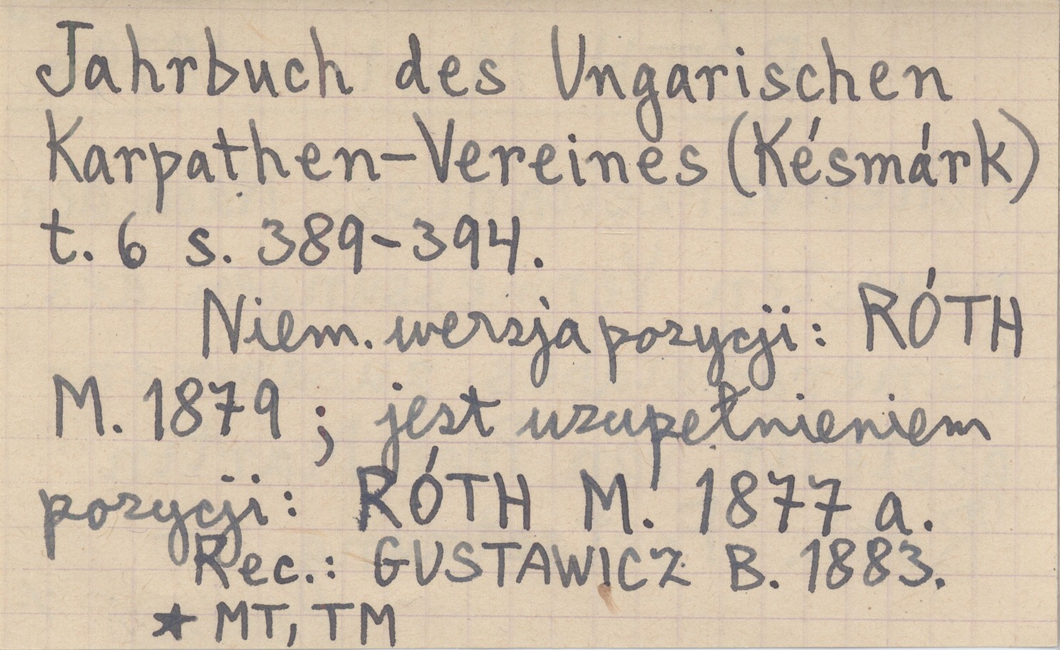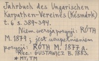 Jahrbuch des Ungarischen Karpathen-Vereines (Késmárk) , T. 6: 389-394. Niem. wersja pozycji: RÓTH M. 1879 ; jest uzupełnieniem pozycji: RÓTH M. 1877 a. REC: GUSTAWICZ B. 1883