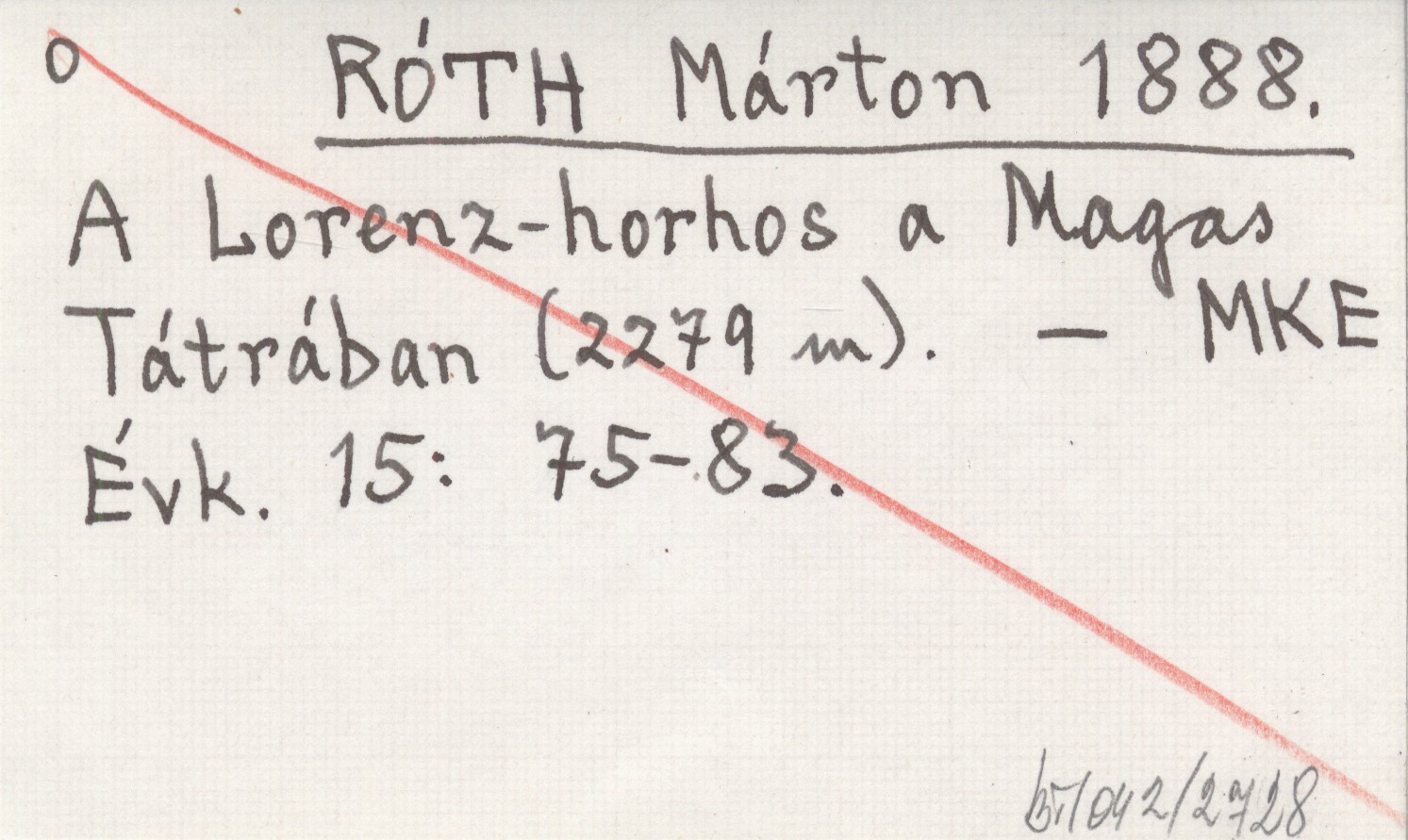 RÓTH Márton 1888 A Lorenz-horhos a Magas Tátrában (2279 m).