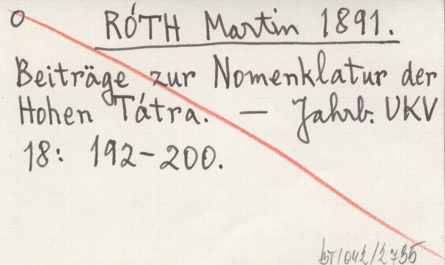 RÓTH Martin 1891 Beiträge zur Nomenklatur der Hohen Tátra.