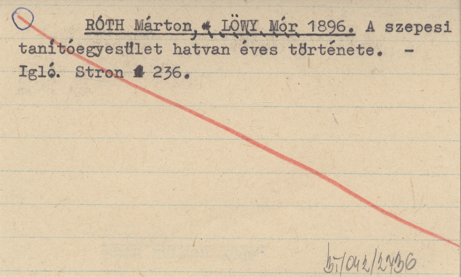 RÓTH Márton LÖWY, Mór. ; 1896 A szepesi tanítóegyesület hatvan éves története.