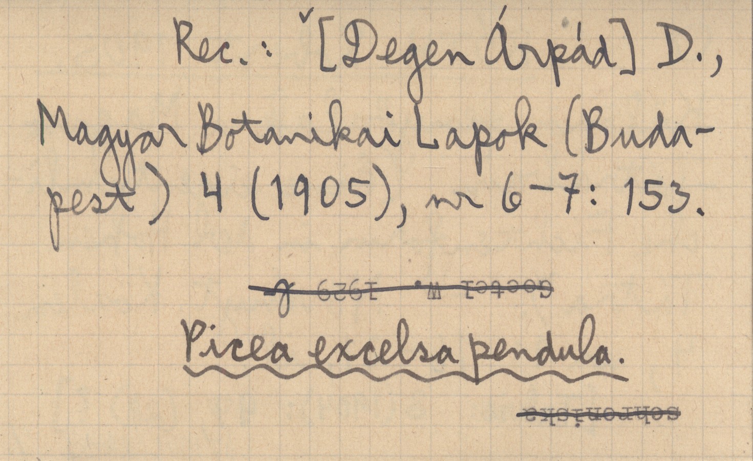 Növényt. Közlem., 4, nr 1: 16-21, il. Picea excelsa pendula. [Także: 3 (1904): 97, (28)?] REC: [DEGEN Árpád] D., Magyar Botanikai Lapok (Budapest) 4 (1905), nr 6-7: 153.