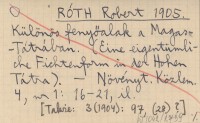 RÓTH Robert 1905 Különös fenyőalak a Magas-Tátrában. (Eine eigentümliche Fichtenform in der Hohen Tátra).