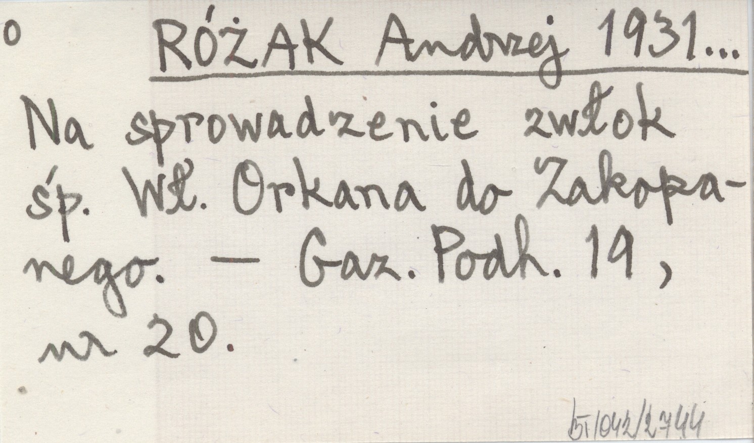 RÓŻAK Andrzej 1931... Na sprowadzenie zwłok śp. Wł. Orkana do Zakopanego.